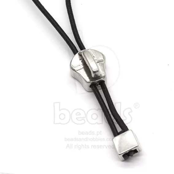 Conta de metal a imitar um fecho éclair, com dois furos.