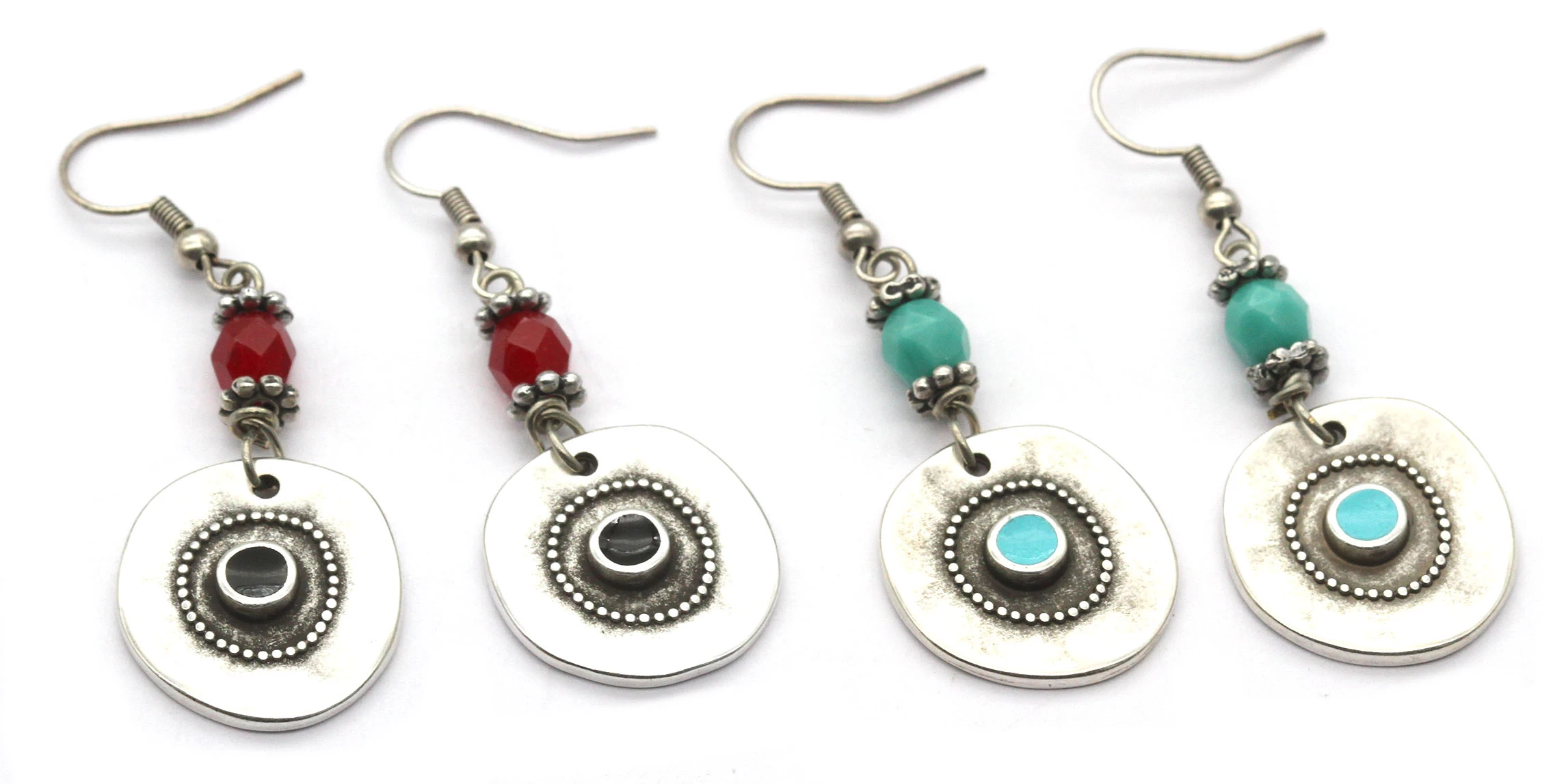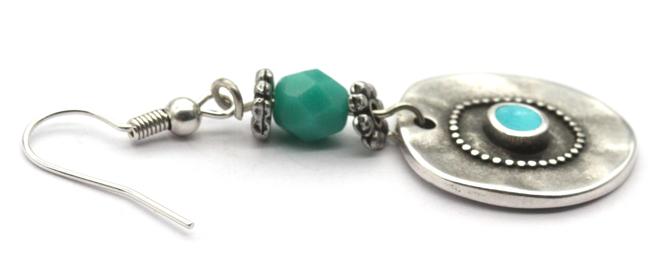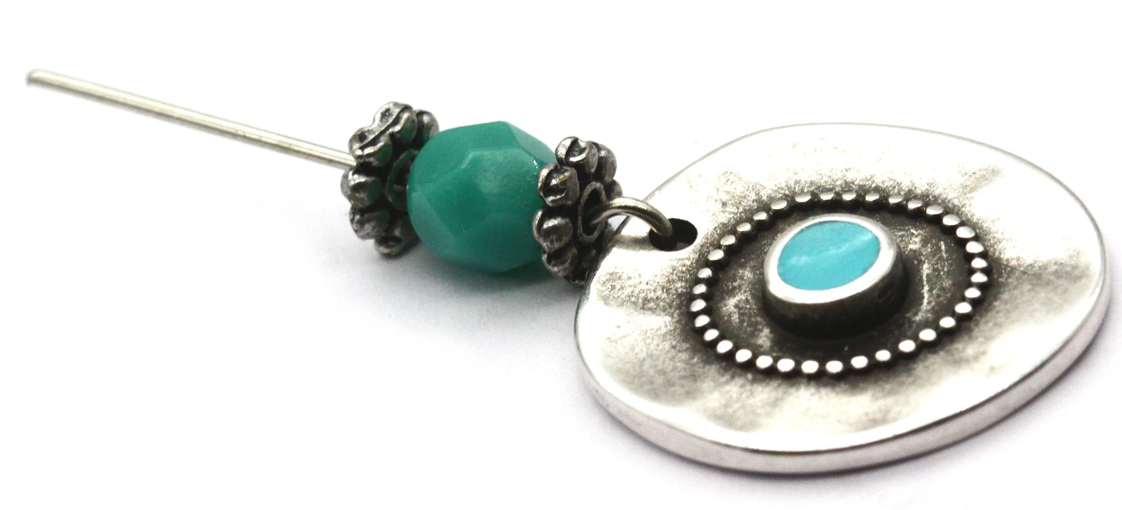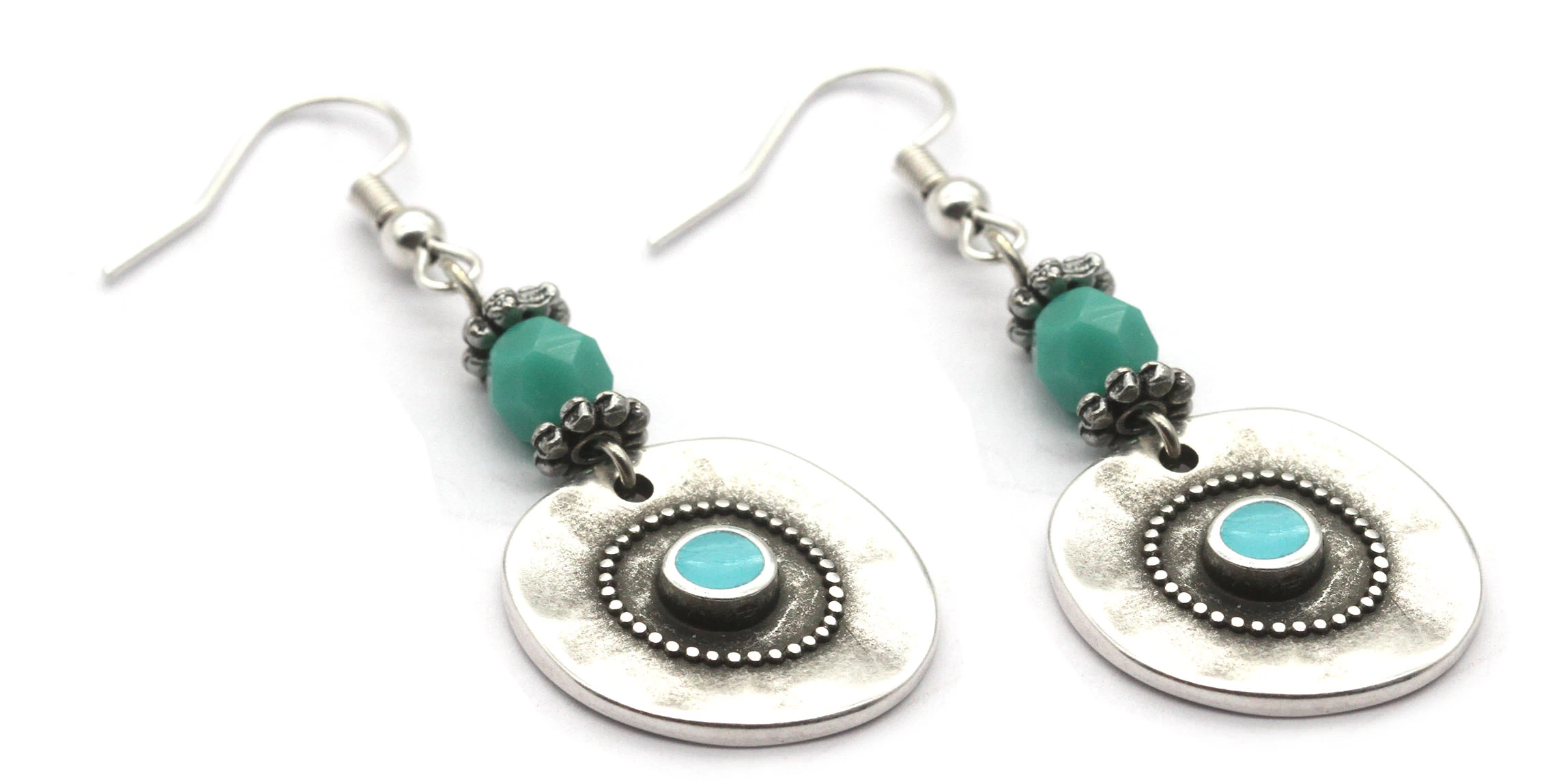 Como Fazer Brincos com Pendente Redondo e Contas Turquesa