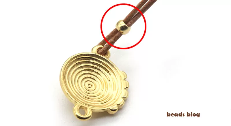 Passe um fio pelo furo do fecho/conta e depois passe o outro fio no sentido contrário. O silicone do interior da conta prende os fios e apenas os deixa deslizar quando são puxados com mais força.