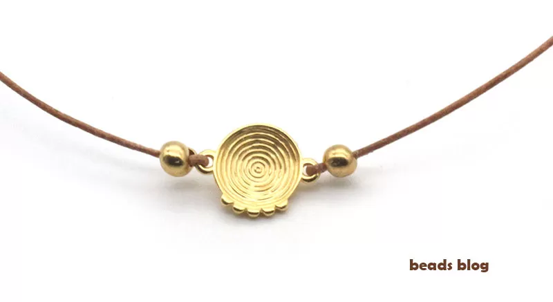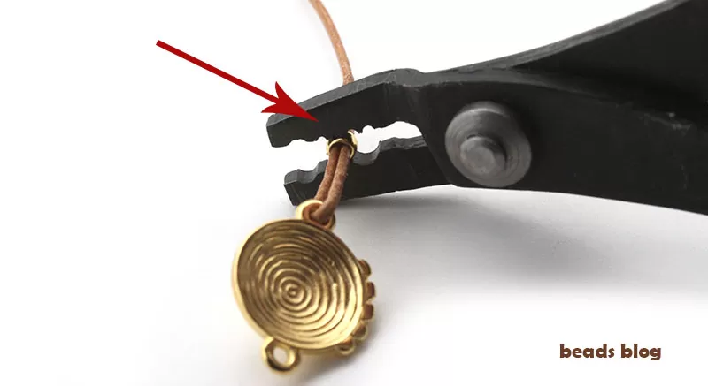 A peça de metal tem duas argolas. Vamos colocar fio em cada uma das argolas e depois uni-lo para criar uma pulseira.