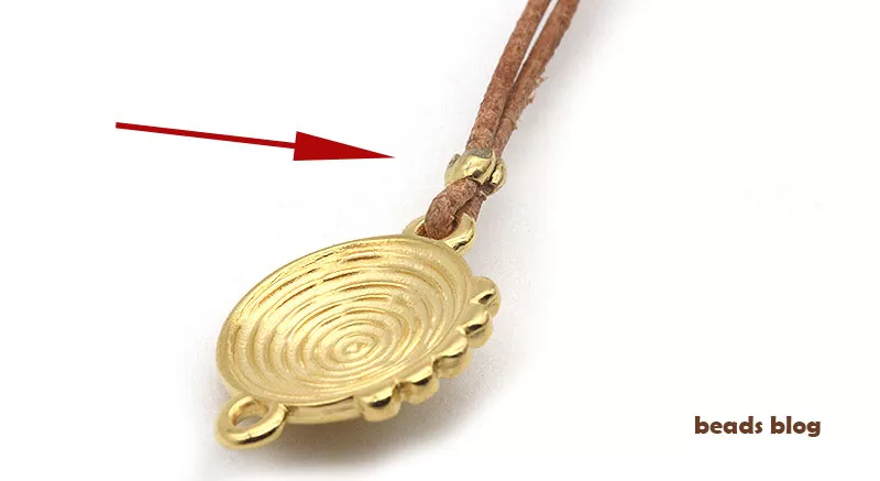 2. Passe uma das pontas, de um dos fios, na argola da peça central;
