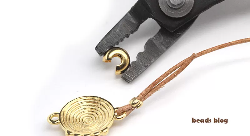 Para fazer esta pulseira só precisa de ter um alicate para apertar alguns dos componentes. Neste exemplo usámos o alicate próprio para apertar grampos, porque com esta ferramenta, para além de os apertar, também os pode arredondar (veja o vídeo abaixo). Assim é mais fácil colocar o tapa-grampos por cima.