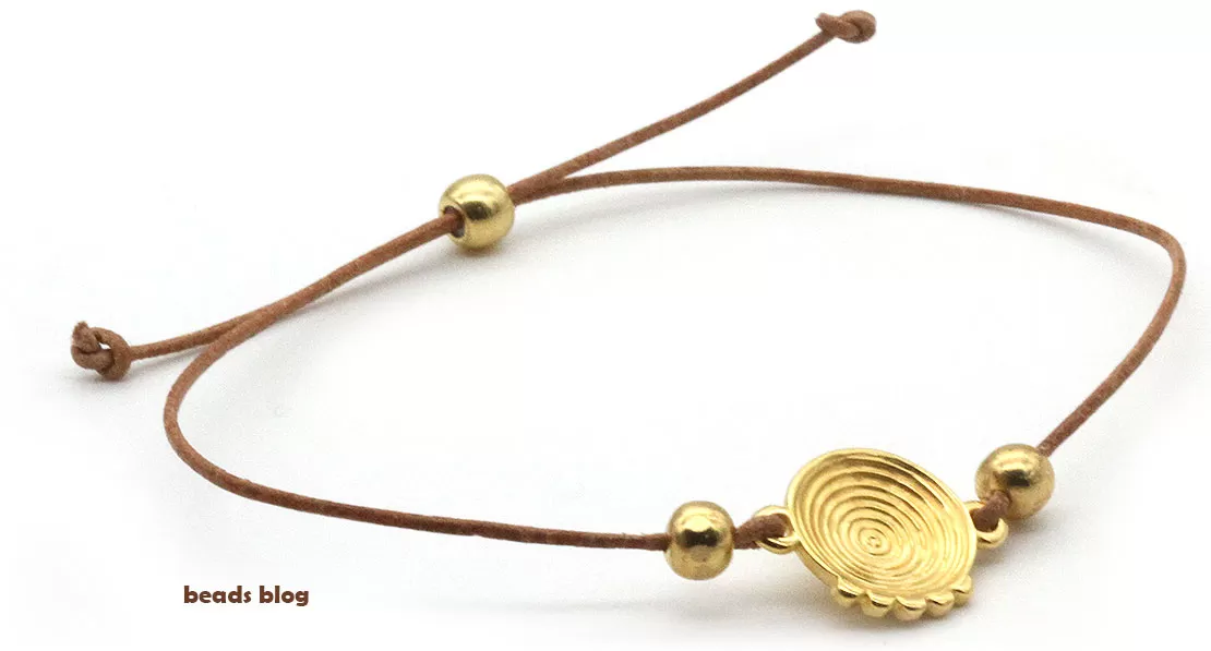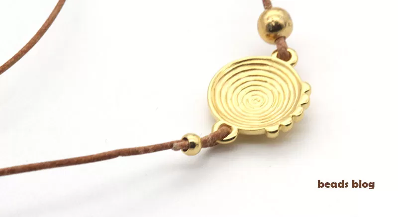 Utilizámos o fio de canguru redondo de 1mm. Este fio de cabedal, apesar de fino, é muito resistente. Para fazer uma pulseira de uma volta, para um pulso de 16 ou 17cm, vai precisar de cerca de 25cm.